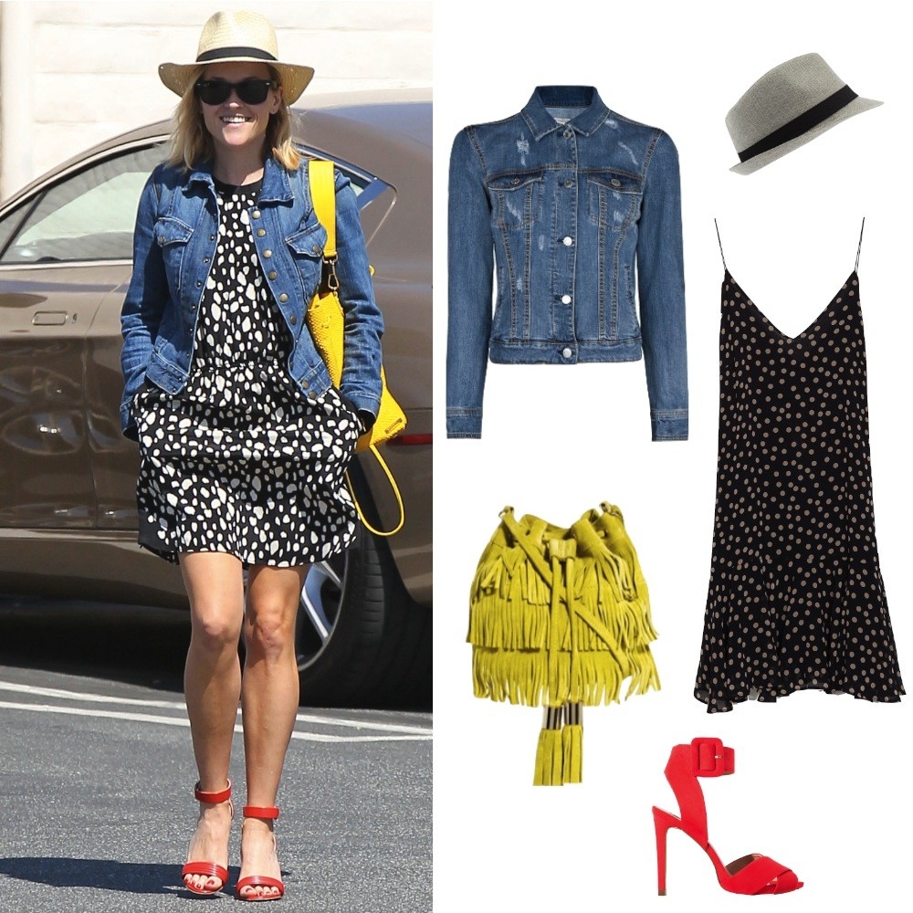 Reese Witherspoon se ha convertido en toda una 'it girl', pues siempre nos sorprende con la acertada mezcla entre su estilo personal y las últimas tendencias. Esta vez nos quedamos con su último look casual, en el que combina un sencillo vestido negro de lunares blancos con básicos como una chaqueta vaquera o un sombrero borsalino, mientras añade una nota de color con los complementos como las sandalias o el maxibolso.